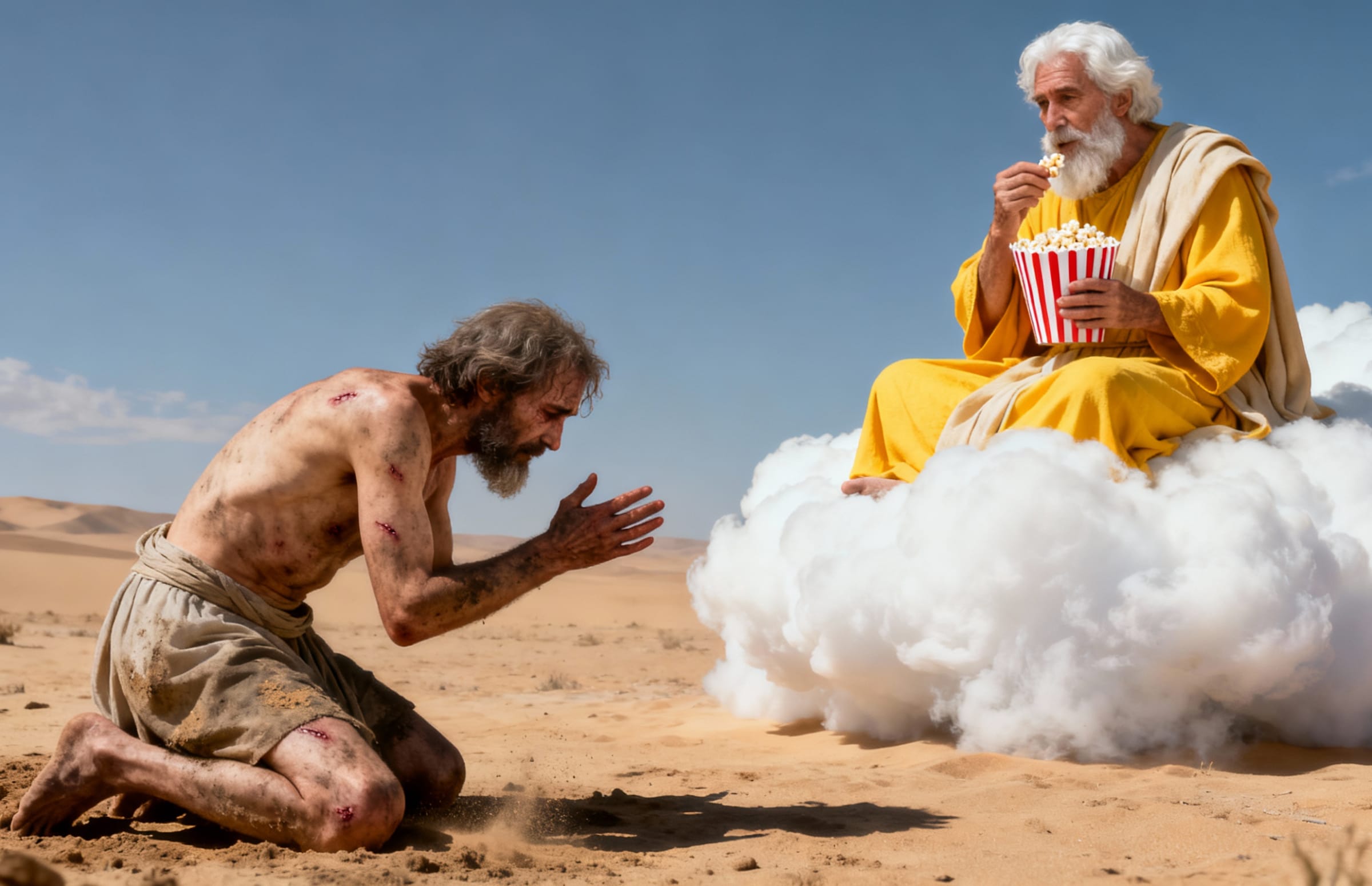 Traci majątek, rodzinę i zdrowie, a wszystko to staje się próbą wiary, nie zaś karą za grzechy. Historia Hioba całkowicie podważa przekonanie, że cierpienie jest zawsze konsekwencją winy człowieka, pokazując, że los potrafi być niepojęty i niesprawiedliwy.